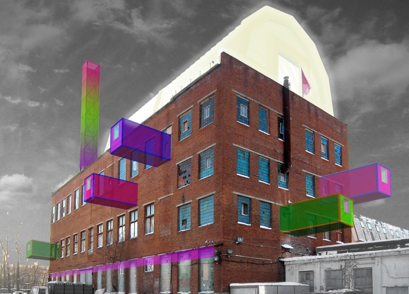На первом этаже предусмотрено устройство двухуровневых мастерских с независимыми входами. На втором этаже преобладают ритейл- и многофункциональное event-пространство в виде лестницы-амфитеатра, охватывающего несколько уровней здания. Третий и четвертый этажи отданы под офисы с окнами-витринами. Общая площадь здания увеличивается на 1042 кв. м за счет новых перекрытий. На кровле планируется установить пневмосооружение площадью 400 кв. м — «Чердак». В качестве визуального аттрактора-лайтбокса предлагается пристроить к зданию светящуюся в темноте «заводскую трубу». Особое внимание уделено пластике фасада: предлагается оборудовать его модульными элементами — из типовых блок-контейнеров.