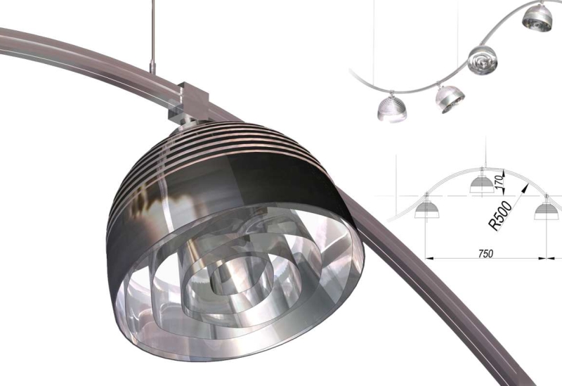 Светильник со светодиодными лампами RGB состоит из свободноподвешенных ромбообразных модулей. Элементы объединяются в мерцающие и переливающиеся 3D-структуры любой формы за счет встроенных с четырех сторон каждого модуля магнитов. Конструкция светильника: радиатор, LED-панель, рефлекторы. Длина модуля – 80 или 150 см, высота – 35 см.