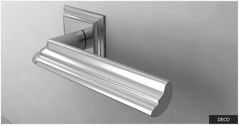 По форме ручка напоминает отрезок профильного карниза или плинтуса в стиле ар деко. Длина 170 мм, сторона площадки основания 50 мм.