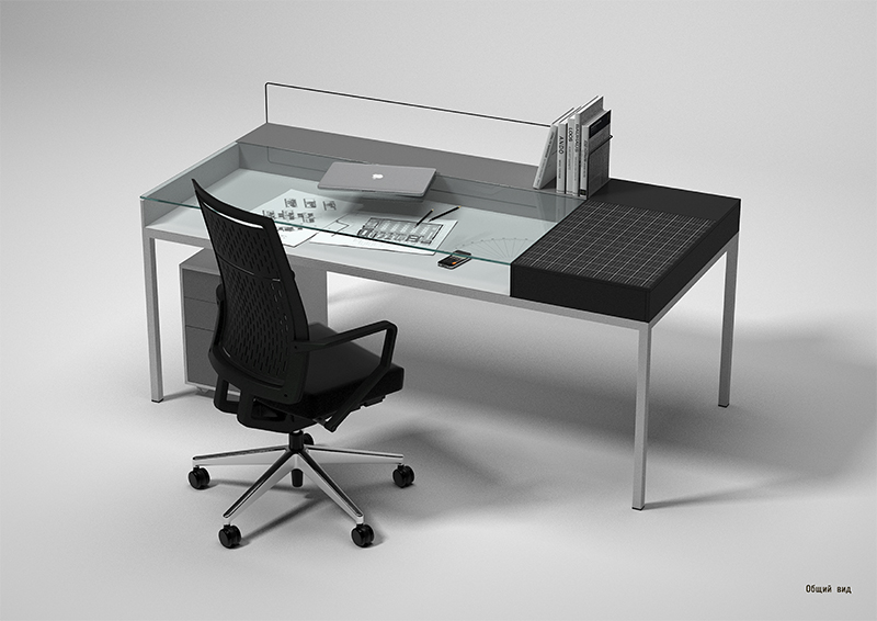 Основная идея – использовать международный стандарт на бумажные форматы ISO 216 для габаритов стола и его основных членений. Офисная работа за столом в большинстве случаев связана с бумагой различных форматов от А8-А0. Стол спроектирован с учетом этих форматов и состоит из четырех основных частей: