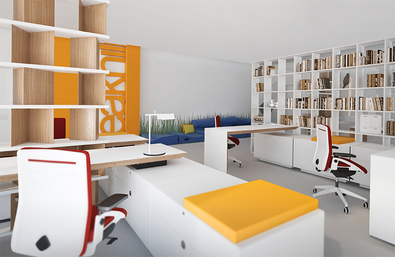 В проекте заложена возможность легкой трансформации рабочего пространства. Составные элементы легко преобразуются, позволяя быстро и удобно добавить или убрать посадочное место, тумбу или ящик. Рабочее станция состоит из двух частей: основания - тумбы и крышки – столешницы, для трансформации из тумбы в стол, а из стола в тумбу их достаточно просто развернуть.