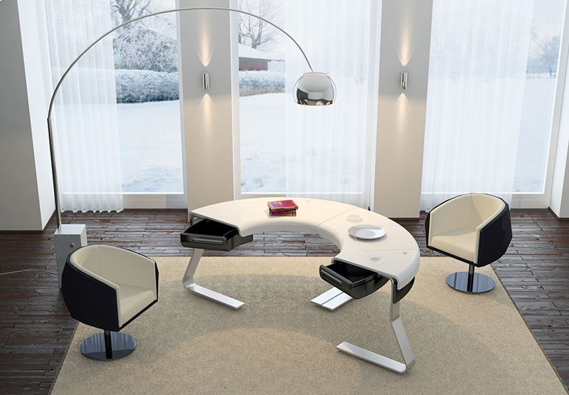 Офисный модуль Sector может трансформироваться в зависимости от задач. Рабочая поверхность столешницы базового модуля дополняется выемками под офисные мелочи и напитки. Клавиатуру также можно спрятать в специальное углубление, если нужно освободить больше рабочего пространства. Офисный модуль разработан как для индивидуального, так и для коллективного использования: из одинаковых элементов можно составить различные комбинации для совместной работы. Столешницы изготовлены из пластика (так же как дополнительные элементы и ящики под столешницей), ножки – из хромированного металла.