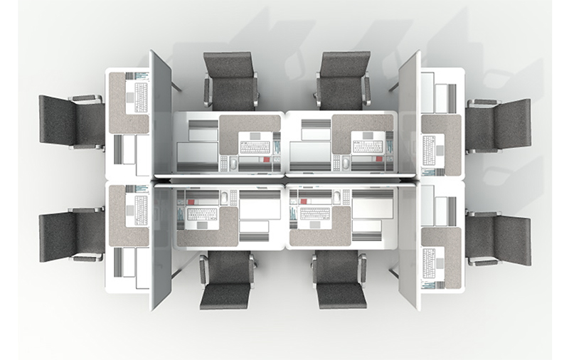Дизайн-проект рабочего места представляет собой мобильный рабочий стол в виде ноутбука со встроенными мониторами, клавиатурой, тачпадом, телефоном, подсветкой и компактными нишами для хранения бумаг и канцелярских принадлежностей. Мобильность обеспечивает выдвижная ручка-ремень, телескопические ножки, раскладная основа и технические выходы для подключения к сети в любом пространстве. В собранном виде стол с пластиковым корпусом и сглаженными углами занимает минимум места.