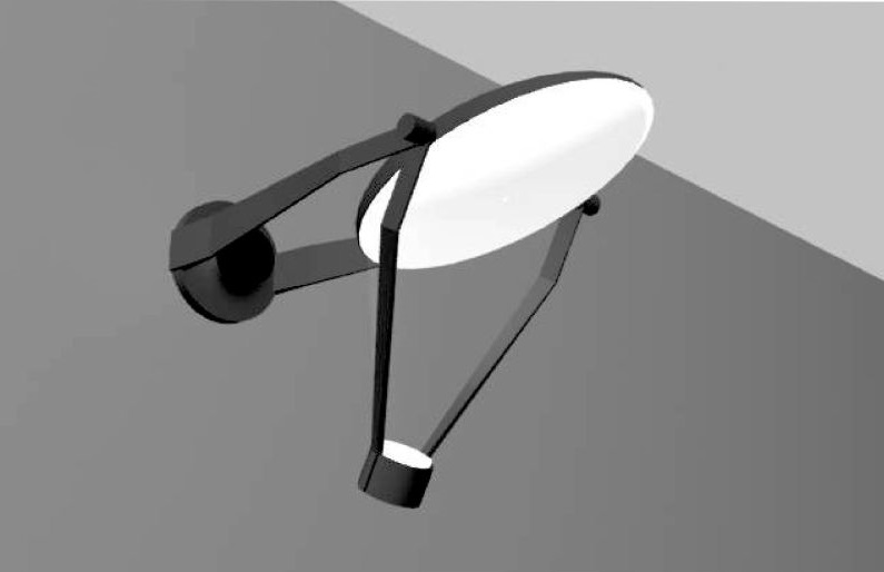 Данный метало-пластиковый светильник размером 920х380 мм предназначен для освещения небольших жилых и нежилых помещений. Крепится на стену дюбелями. Не исключается возможность разработки настольного, торшерного и крепежа в шинопровод. Корпус состоит из трех частей [ базовая, консольная с корпусом светодиодного-оптического светильника, и светоотражающая дисковая]. Они поворотные, оборудованы фиксаторами. Положение частей настраивается по функциональной необходимости.